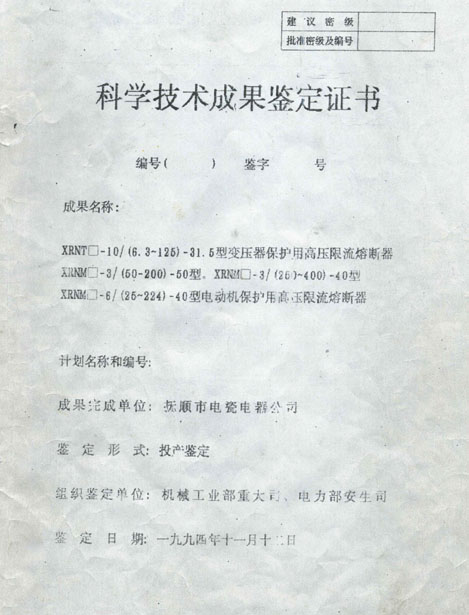 撫順電瓷廠電瓷電器公司是原機(jī)械工業(yè)部定點(diǎn)生產(chǎn)高壓隔離開關(guān)、高壓熔斷器、絕緣子、避雷器的骨干企業(yè)之一。生產(chǎn)歷史悠久,技術(shù)力量雄厚,產(chǎn)品質(zhì)量可靠,產(chǎn)品遍及全國,遠(yuǎn)銷國處。具備高壓隔離開關(guān)、高壓熔斷器的設(shè)計(jì)、開發(fā)及批量生產(chǎn)的能力。擁有英國BRUSH公司具有國際先進(jìn)水平的高壓熔斷器制造技術(shù)和生產(chǎn)線關(guān)鍵設(shè)備,完備的檢測儀器。能夠批量生產(chǎn)符合國家和國際標(biāo)準(zhǔn)的3.6kv-40.5kv各種規(guī)格的戶內(nèi)外高壓隔離開關(guān)、高壓限流熔斷器系列產(chǎn)品。產(chǎn)品在國家高壓電器質(zhì)量監(jiān)督檢測中心通過全部型式并取得了兩部鑒定和型號證書,是國家經(jīng)貿(mào)委城農(nóng)網(wǎng)改造的推薦產(chǎn)品,通過了ISO9002國際質(zhì)量體系認(rèn)證,曾榮獲機(jī)械部科技進(jìn)步二等獎和地方優(yōu)秀新產(chǎn)品獎。